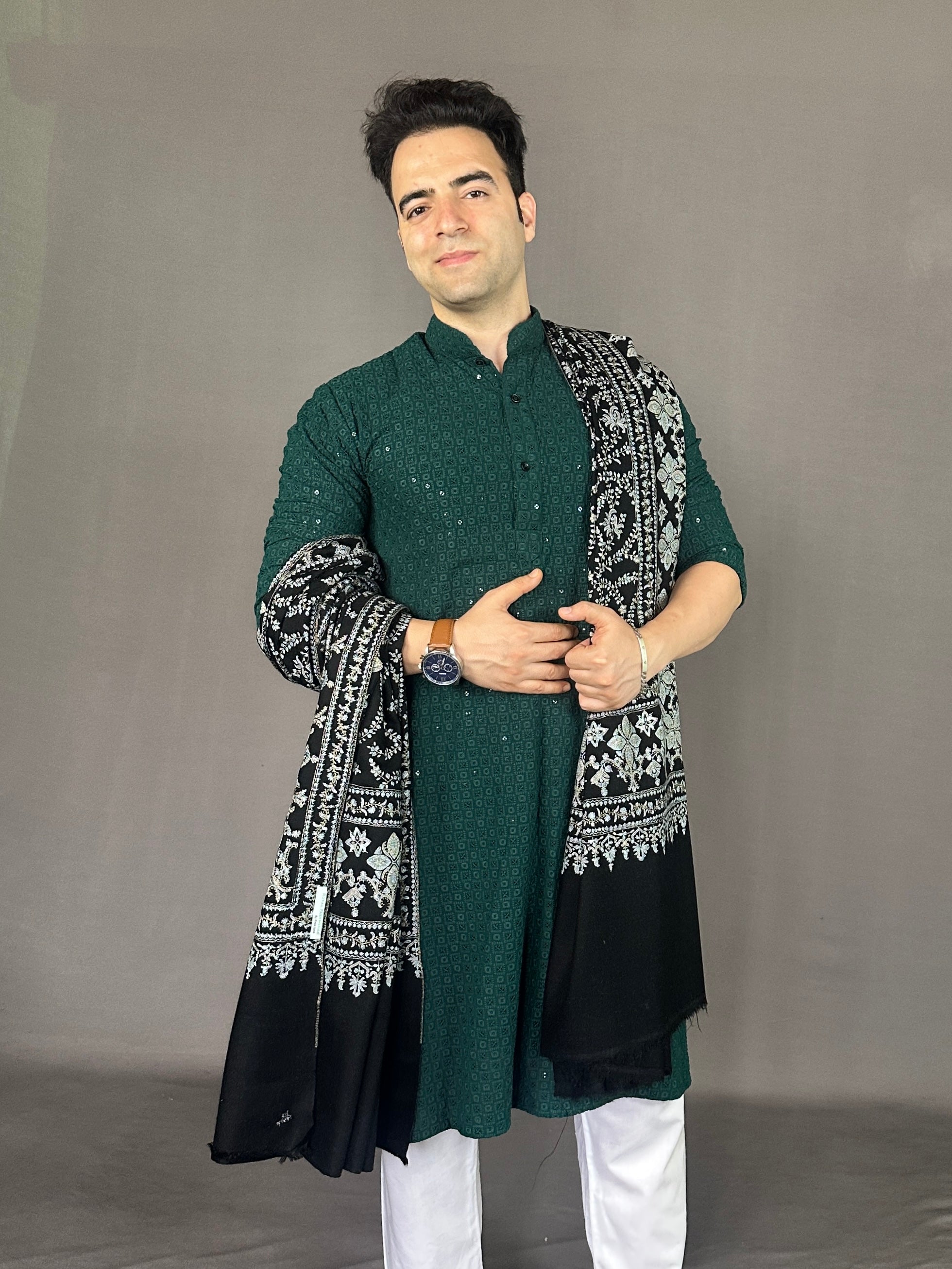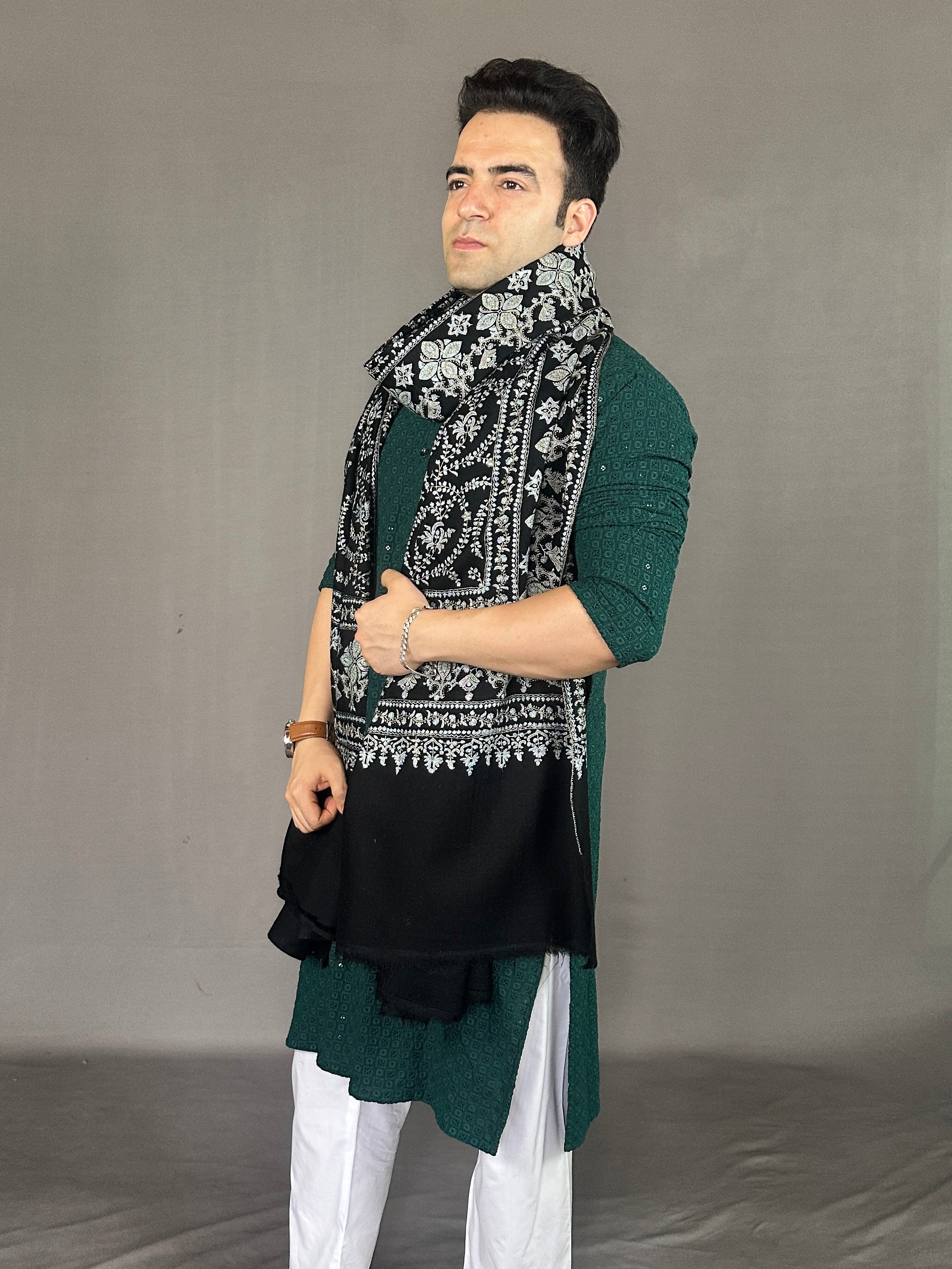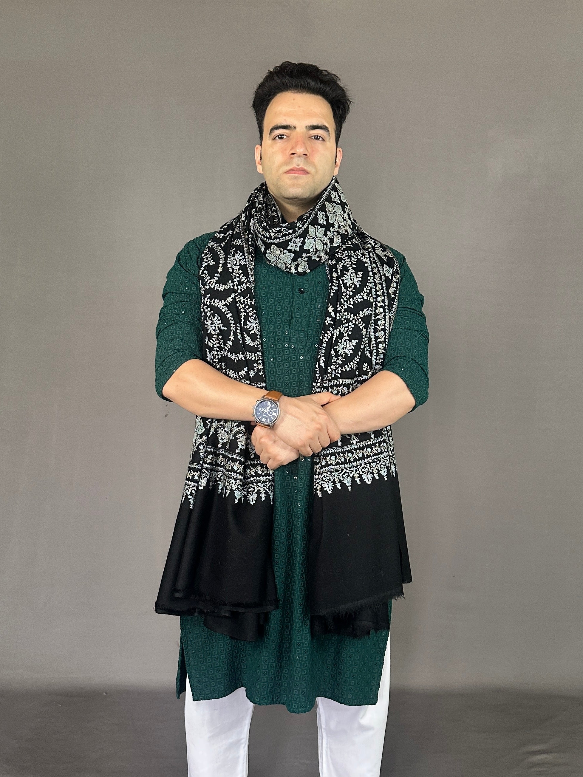 Handwoven on traditional Kashmiri looms
